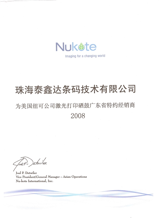 泰鑫达公司被授权为美国纽可公司激光打印硒鼓广东地区指定代理商